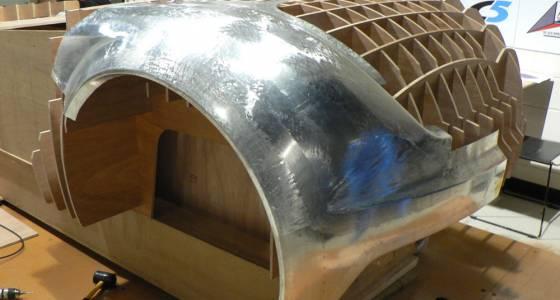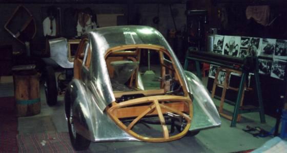 The car was delivered as a bare timber frame ready to skin in Aluminium.