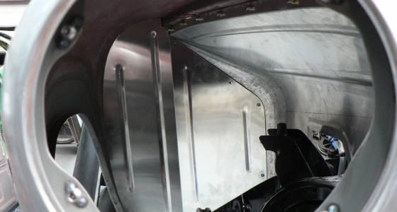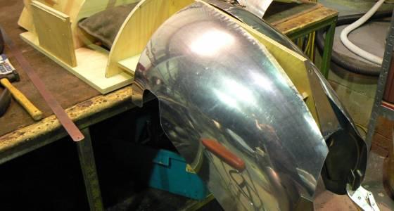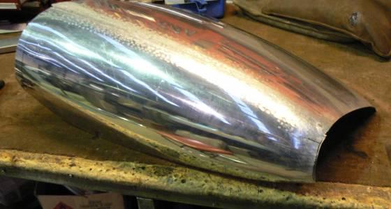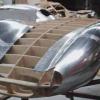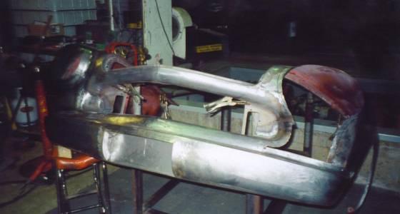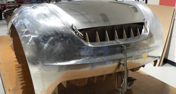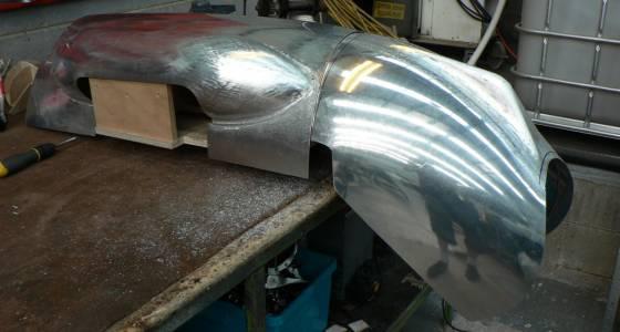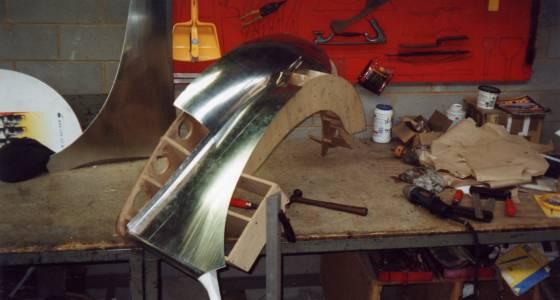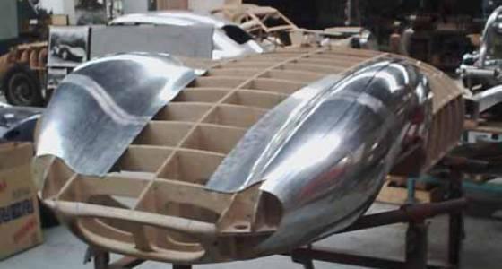 The alluminium body skin was recreated using the origional body panels and pictures to insure a correct nose and tail were produced from wire cages and timber bucks.